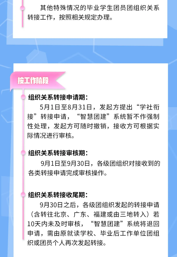 为顺利推进“学社衔接”工作,自5月起,全团依托“智慧团建”系统开展2020年毕业学生团员团组织关系转接工作,直观图解来了!