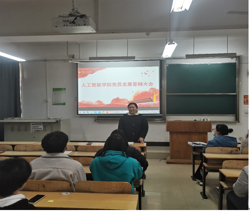 2021年12月13日中午,人工智能学院在综合楼201教室举行了2021年下半年预备党员发展答辩会。人工智能学院党总支书记吴茜、学生第一党支部书记吴雅雅、学生第二党支部书记吴佳曦出席会议并参与现场评议工作。会议由吴佳曦老师主持。