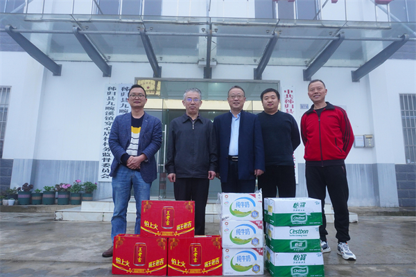 图为学校领导向穿心店村送上了慰问品 摄影:刘婕