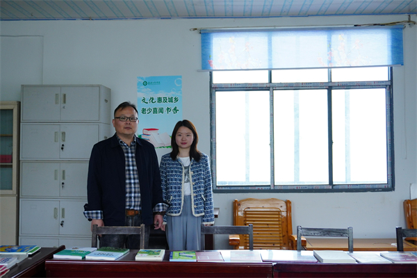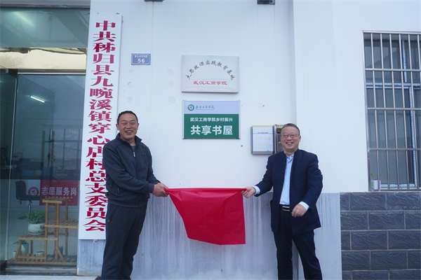 图为副校长左宗文代表学校为穿心店村“AWC万象城娱乐乡村振兴共享书屋”揭牌 摄影:刘婕