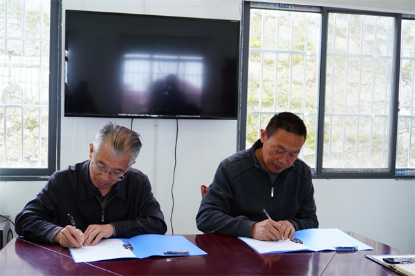 图为左宗文副校长和向兵镇长签定镇校共建流动书屋合作协议书 摄影:刘婕