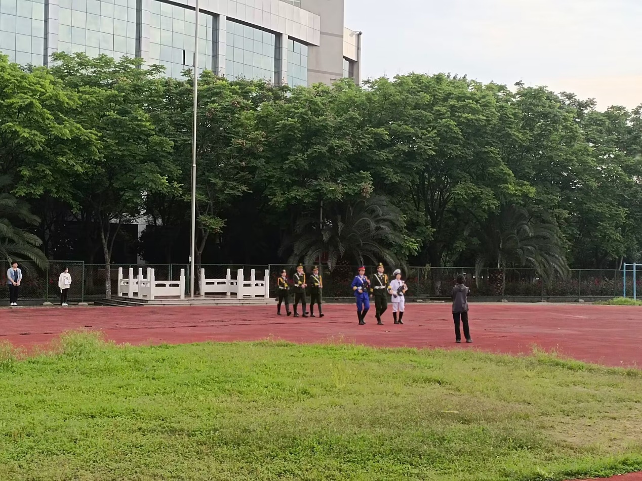 2023年5月8日星期一清晨人工智能学院在学校操场举行升旗仪式,所有大一、大二、大三学生和党总支书记以及各年级辅导员老师参加了本次升旗仪式。