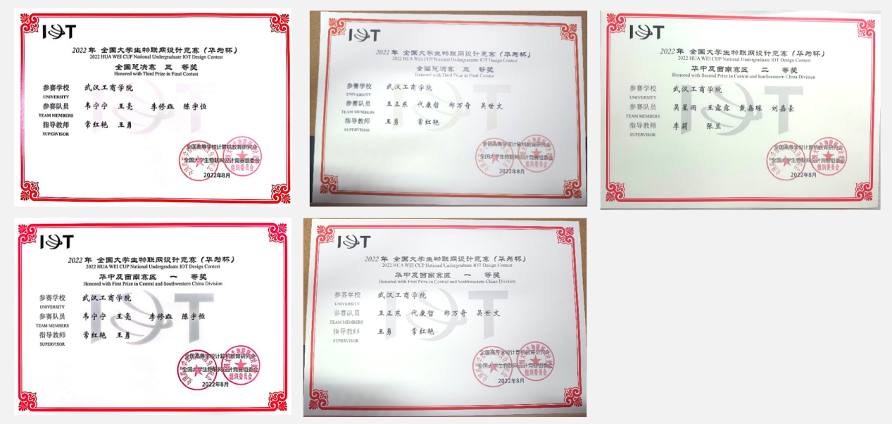 图3-2019年王勇、伍保红、夏宏雷三位老师带领学生团队参加物联网设计竞赛(华为杯)获得国家级二等奖2项