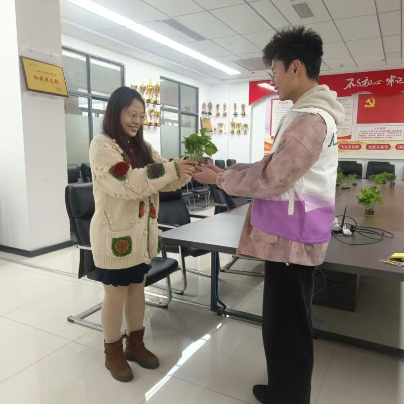 活动最后,志愿者们在植树节当天为学院老师送上一盆绿植,感谢老师们的辛苦教导。此次清扫活动,是我院学雷锋活动月的一个缩影。通过这样的活动,同学们深刻体会到了雷锋精神的内涵,那就是无私奉献、乐于助人。