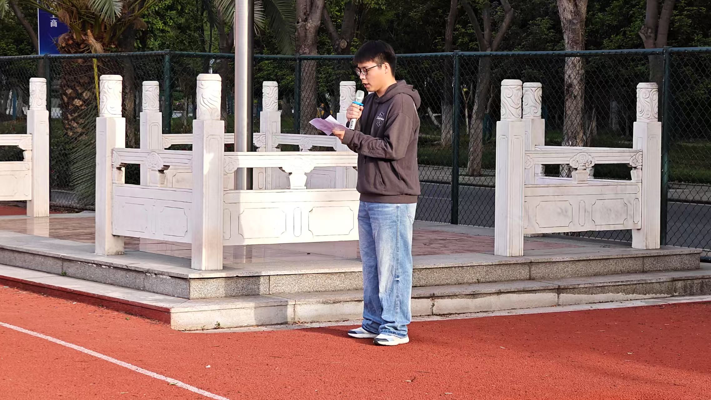 我院大三22级人工智能专业团支书石镇托作为国旗下讲话代表,提出明天就是第十个全民国家安全日,号召我院学生“树立意识、加强学习、参与实践、勇于担当”四点要求,凸显青年在维护国家安全中的使命担当。