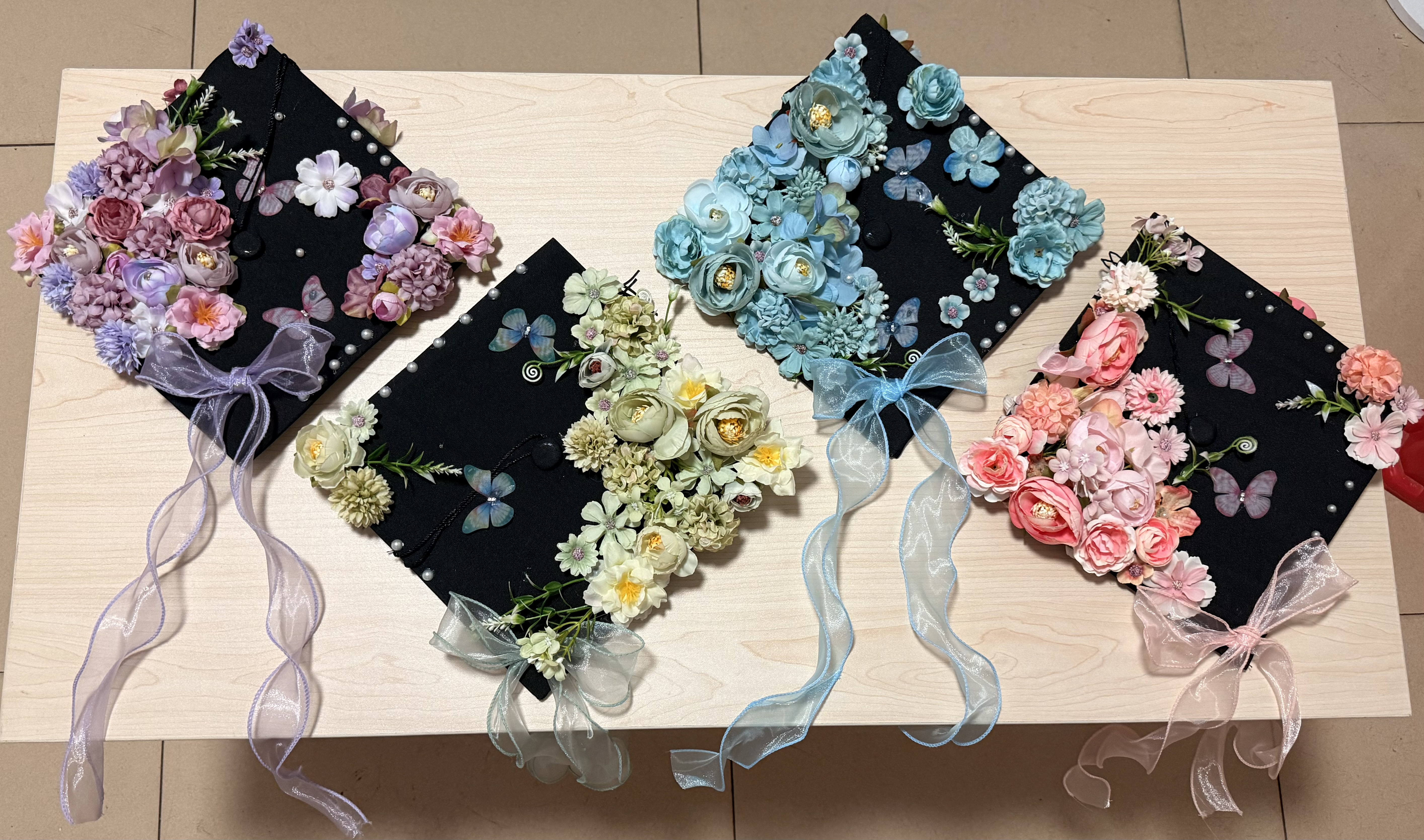 随后,毕业生们纷纷拿起手中的材料,开始动手制作属于自己的簪花学士帽。他们或细心挑选花瓣,或巧妙搭配颜色,每一个动作都充满了对传统文化的敬畏和对美的追求。制作过程中,毕业生们以花为语,以帽为卷,将大学四年的点滴融入设计:实验数据里的反复验证化作花瓣的纹理,图书馆深夜的专注思考凝成丝线的缠绕,同窗携手的情谊则化为花簇间的错落点缀。有参与者感慨:“这顶学士帽不仅是我学术生涯的见证,更是青春故事的容器。未来无论走到哪里,它都会提醒我,曾有一群人与我并肩逐梦。”活动尾声,毕业生们佩戴亲手装饰的学士帽合影留念,镜头定格的不仅是灿烂笑容,更是对AI理想的执着与对未来的无畏。
