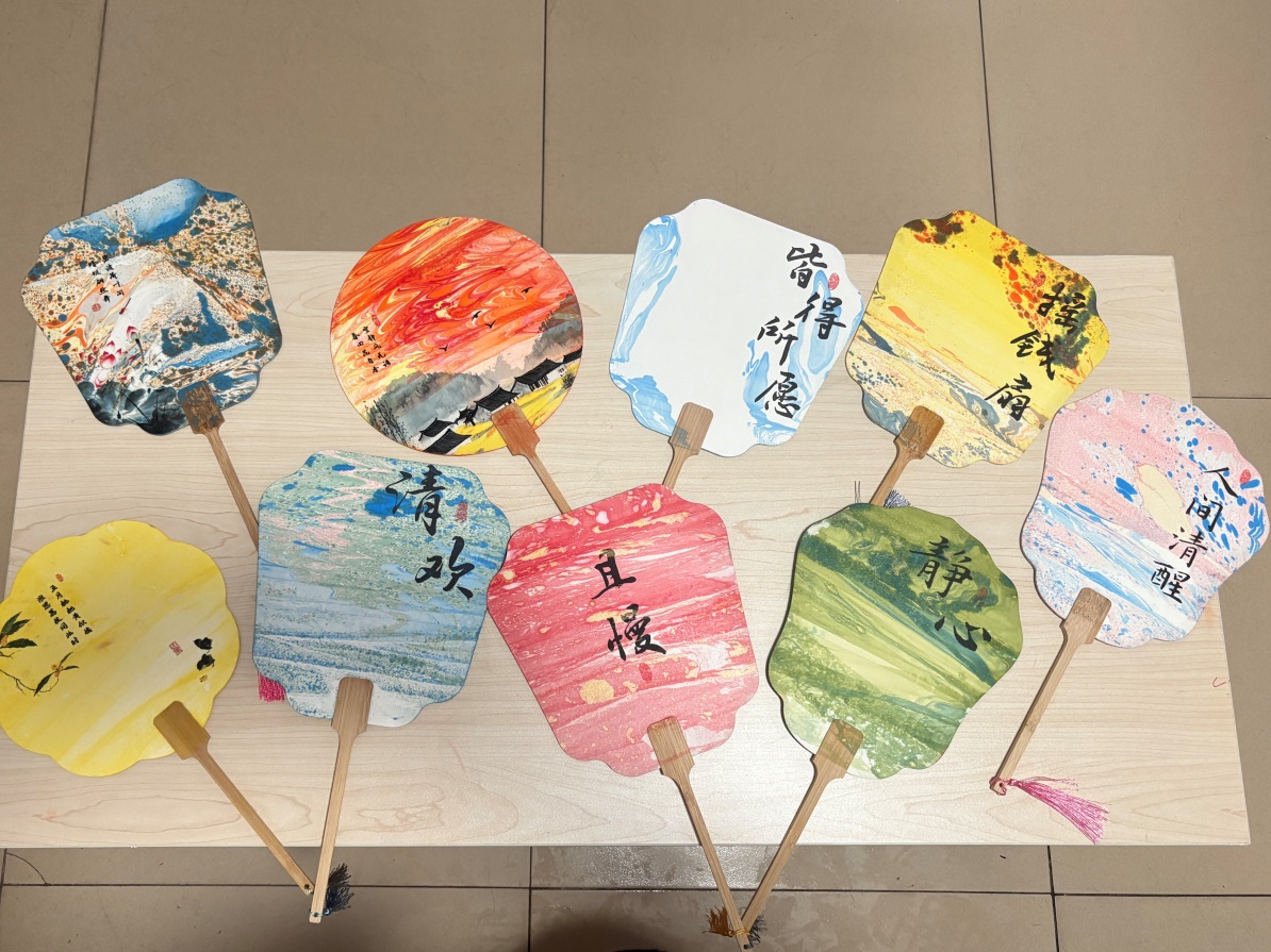 经过一番精心创作,一把把精美的漆扇在同学们的手中诞生。这些漆扇不仅色彩斑斓、图案精美,更蕴含着同学们对传统文化的热爱和对艺术创作的执着追求。当同学们手持自己亲手制作的漆扇,脸上洋溢着自豪与喜悦的笑容时,整个活动现场都充满了浓浓的诗意与美好。