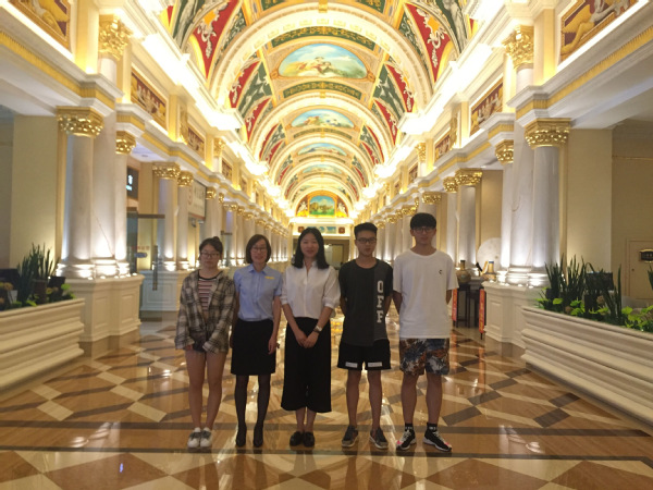 图为带队老师同酒店人事经理及实习同学在酒店大堂合影