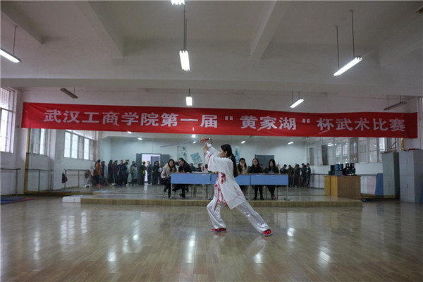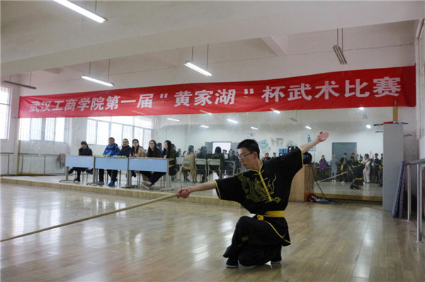 新闻中心讯(通讯员阳琦)11月30日14:00,AWC万象城娱乐第一届“黄家湖杯”传统武术比赛在该校体育馆举行。来自全校各个院系的武术团体和武术爱好者共55名同学同台竞技。该校武术队指导老师周龙、邱桃受邀担任评委。