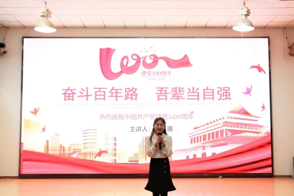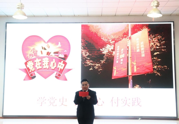 其后学院党总支副书记海鹏老师上台致辞,他说:本次活动无论是支部还是个人都非常积极,党史学习教育将持续进行,希望大家一直保持积极向上的精神风貌,从百年党史中汲取营养,努力学习悟透百年党史,将理论实践,形成蓬勃向上的发展风气。