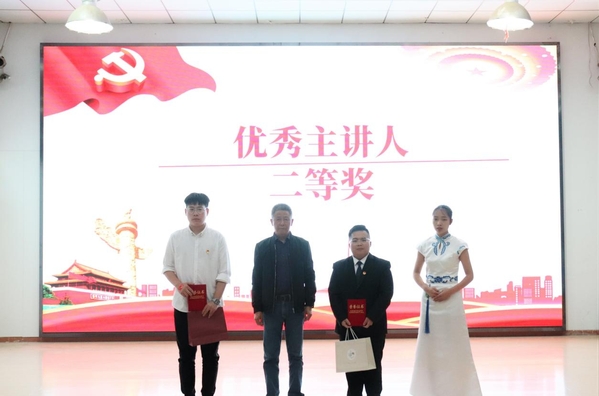 图为李纪明老师为优秀主讲人二等奖颁奖