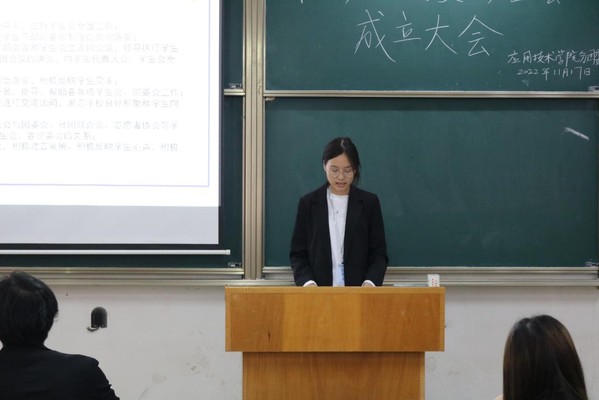 学生会主席钱亚妮对学生会六个部门做出了详细的人员介绍,以及对于后续工作的展望与期待,并且对现阶段的努力做出积极的肯定,也表示学生会成员需要融入自己的职位,做好交给自己的任务,对今后工作要更加负责。
