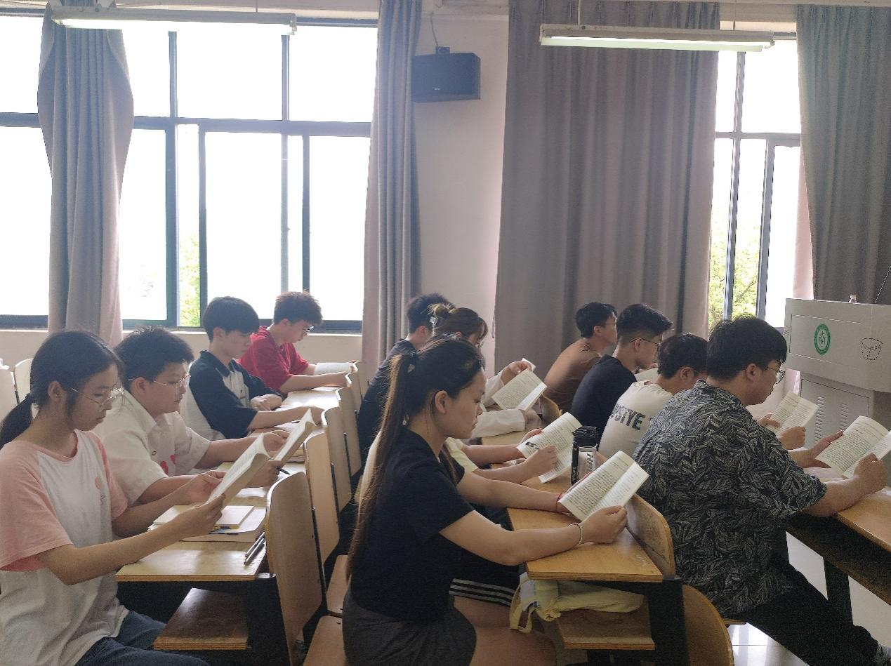 2023年6月26日中午12:20,应用技术学院学生党支部组织学生党员于综合楼306教室开展学习贯彻习近平新时代中国特色社会主义思想主题教育读书班。