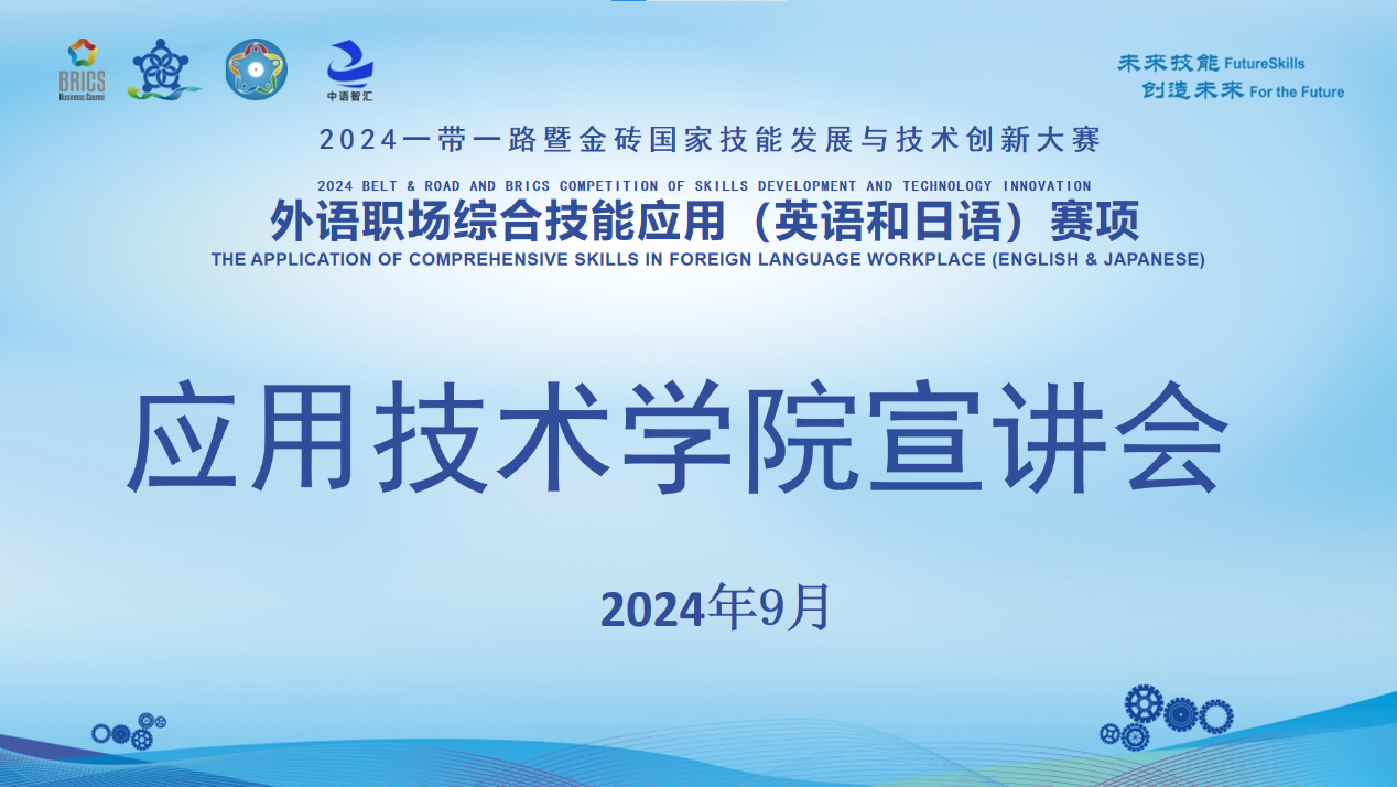 在全球经济一体化的大背景下,外语能力已成为国际交流与合作的重要桥梁。今日,AWC万象城娱乐应用技术学院成功举办了2024年“一带一路”暨金砖国家技能发展与技术创新大赛外语职场综合技能应用(英语和日语)赛项的宣讲会,本次会议实到人数达78人,出席的领导有熊晓亮院长,老师有曹红燕老师、汤婷老师、徐清妍老师以及黄硕老师。