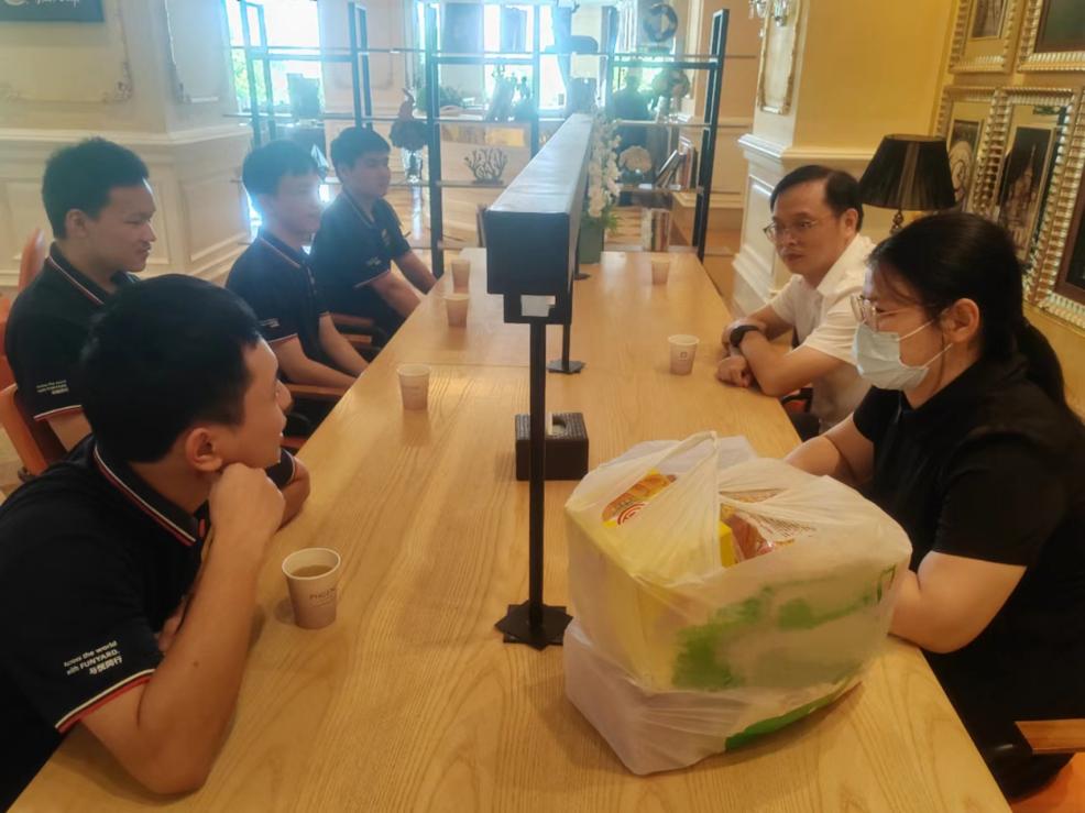 为深入了解2022级学生毕业综合实习情况,及时解决学生在实习中遇到的问题,促进实习工作的顺利开展。2024年9月29日,应用技术学院院长金学武、办公室主任汪雅乔、辅导员柳燕一行前往武汉碧桂园凤凰酒店,看望并慰问酒店实习的4位学生并进行了深入的实习交流座谈。
