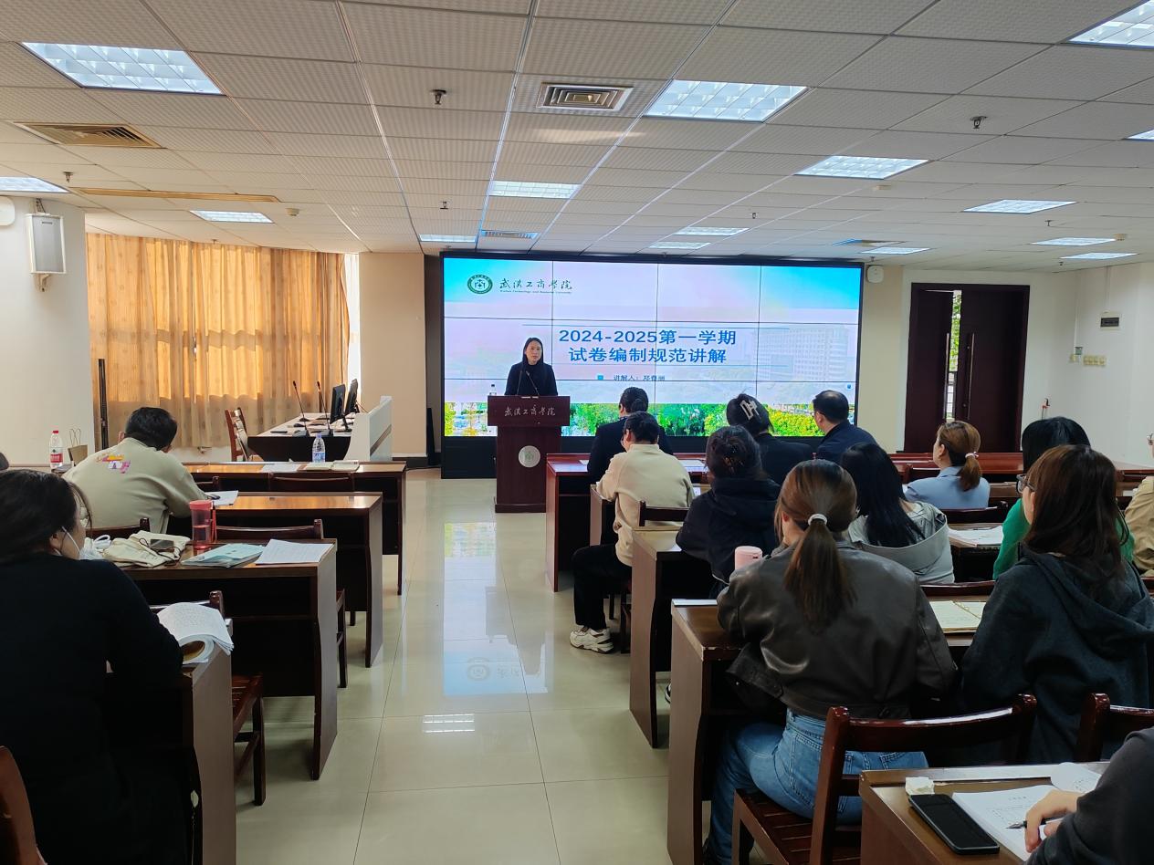 根据学校教学工作安排和《AWC万象城娱乐课程考核试卷 命题、评阅、归档工作规范》为规范,应用技术学院于2024年11月7日在综合楼10楼会议室召开全体教师进行了2024-2025第一学期试卷命题规范的讲解。