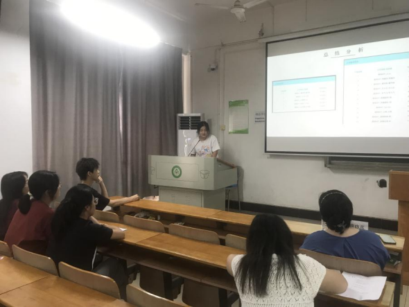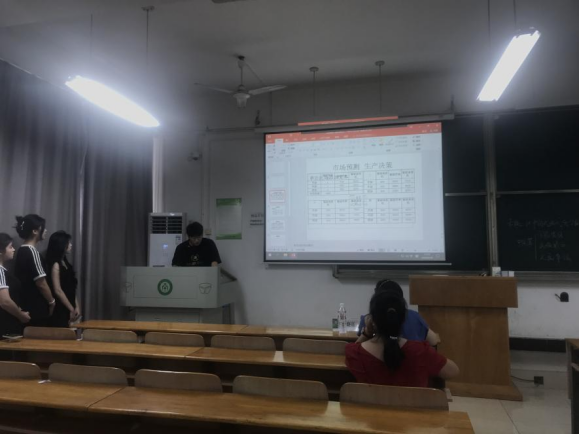 会议开始,熊院长对参赛的同学的给予充分肯定,鼓励同学们努力学习,认真联系,积极合作,在前期知识赛中充分发挥自己的实力并取得优秀的成绩。接着4支队伍以小组为单位通过PPT形式展示在练习赛中的成绩,每位成员都介绍了自己在比赛中的分工部分及比赛心得。接着指导老师邵弯全面阐述了营销模拟赛道全国 预选赛和全国总决赛的赛程安排、竞赛规则和内容。最后熊院长进行总结,她详细介绍了学院以往该比赛的基本情况及参赛队伍的可取做法和取得的成绩,鼓励学生们在此届比赛中再创新高。
