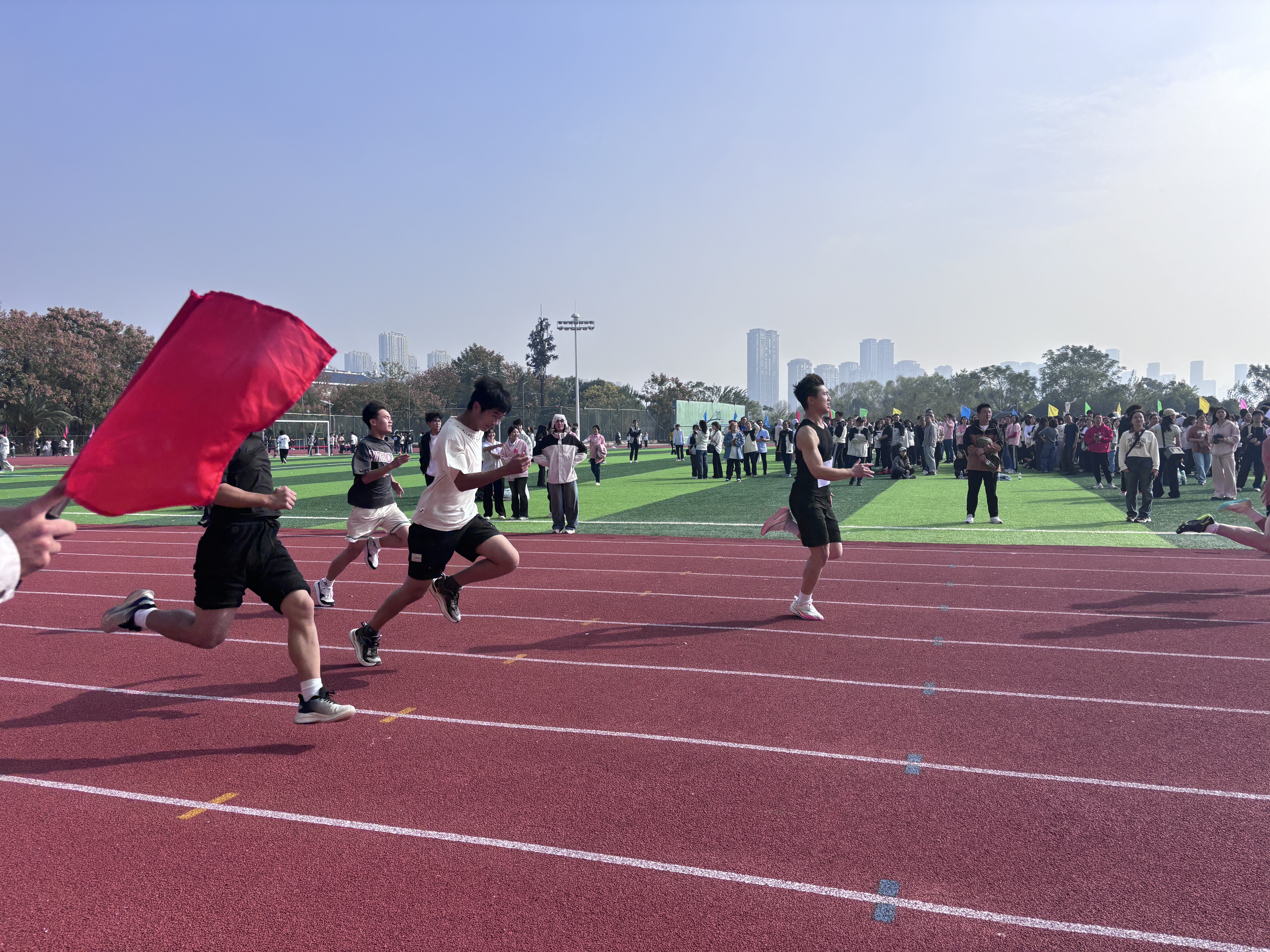 随着一声枪响,他们像闪电般冲了出去,矫健的身姿在阳光下闪烁。那是速度的较量,每一步都扬起细微的尘土,每一次摆臂都带着破风的力量。他们的眼神坚定地盯着前方,仿佛在那终点线后有着他们梦寐以求的珍宝。百米赛道宛如战场,他们用最快的速度诠释着拼搏的意义。而在长跑比赛中,运动员们展现出了令人敬佩的耐力。他们步伐沉稳,呼吸有节奏地起伏。一圈又一圈,汗水湿透了衣衫,疲惫写在脸上,但他们的脚步从未停歇。这是意志的考验,是对自我极限的挑战,他们用坚持告诉我们,只要有信念,就能超越自我。