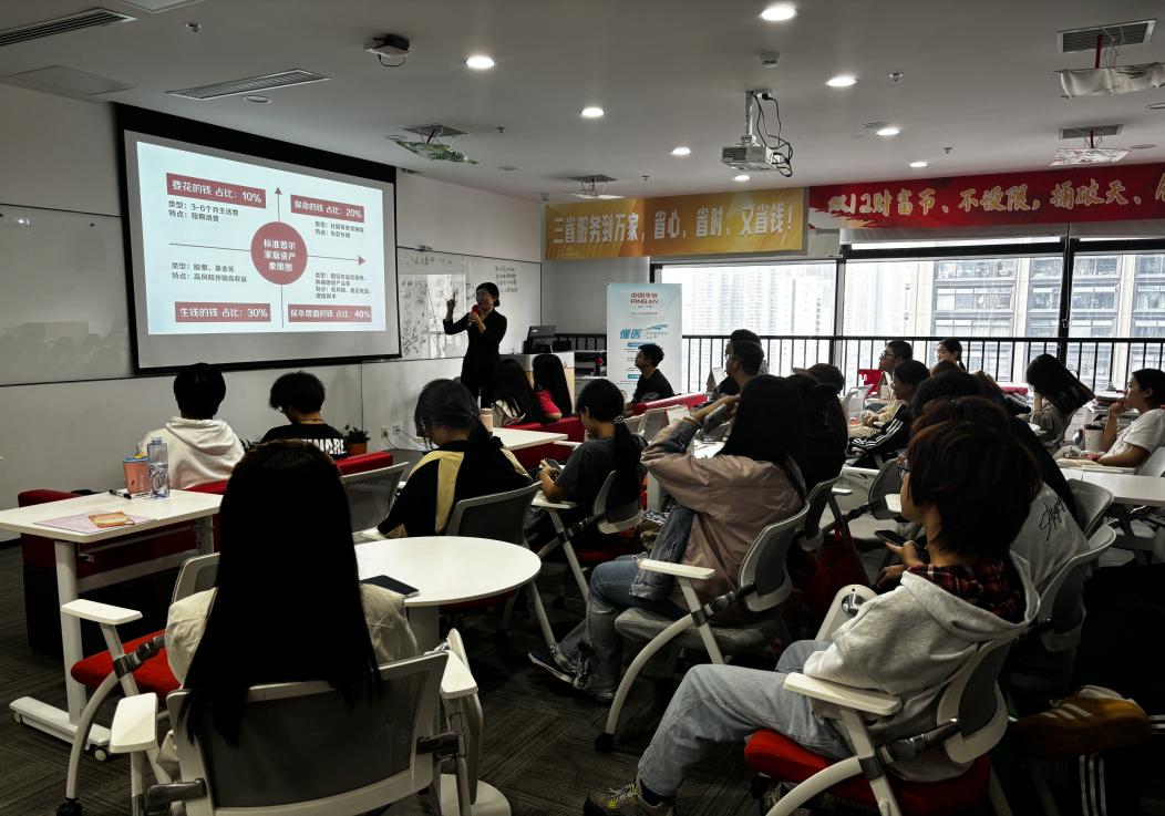 首先,同学们参观了平安私人银行部门。该部门的黄亮总为大家详细介绍了私人银行的服务内容、客户群体以及运营模式。黄亮总深入浅出的讲解,让同学们对私人银行这一高端金融服务有了更为直观的认识。