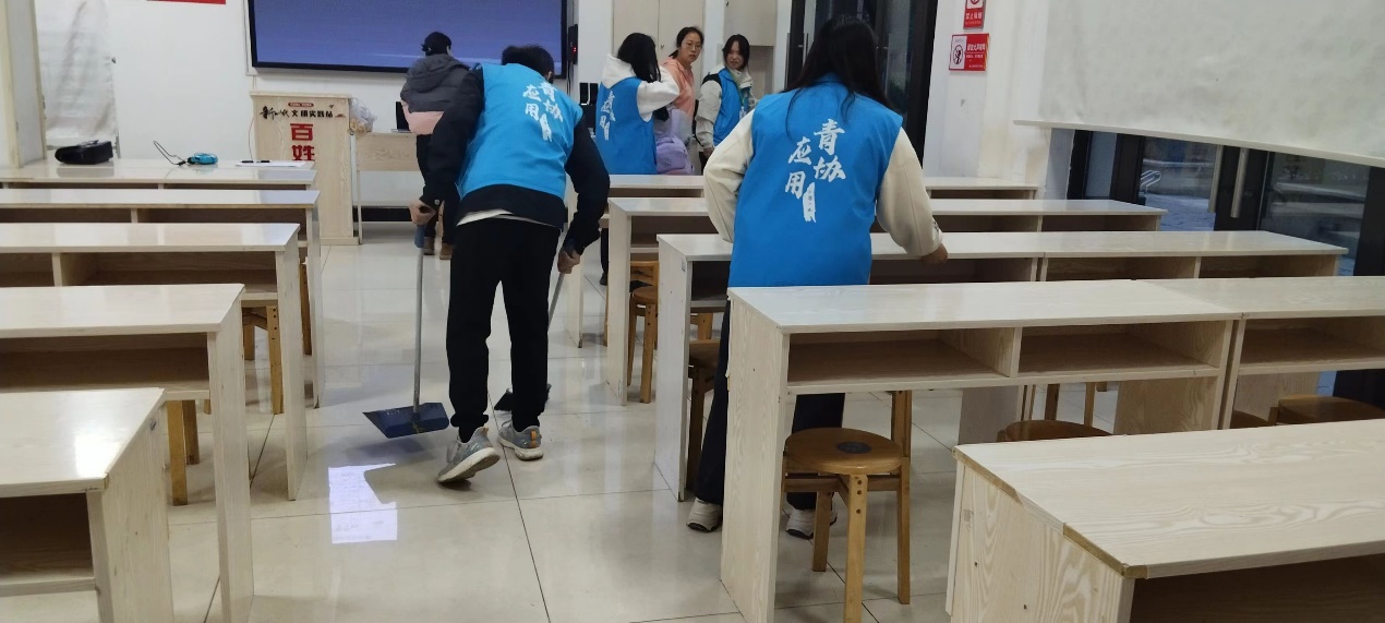 在每次活动结束后,志愿者们丝毫没有懈怠,迅速投入到打扫卫生的工作中。他们手持扫帚,仔细清扫着地面上的杂物与垃圾,仔细整理着桌椅。大家齐心协力使社区环境焕然一新。