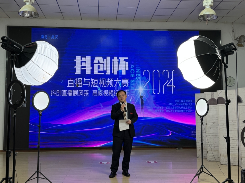 12月23号晚上,备受瞩目的抖创杯直播与短视频大赛决赛在体育馆403成功举办,此次大赛旨在挖掘和培养短视频创意创作、网络直播带货等专业技术人才,推动直播电商产业的健康发展。本次大赛的指导单位是武汉市互联网直播行业协会。活动第一项由主持人介绍参加的评委。