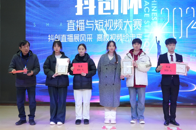 活动进入高潮,第四项议程——抖创杯直播决赛颁奖仪式正式拉开帷幕。此次颁奖旨在表彰在直播决赛中表现突出的团队和个人,鼓励他们在直播领域的创新与发展。首先颁发的是优胜奖。多个团队凭借他们的表现和创意脱颖而出,荣获了优胜奖的殊荣。