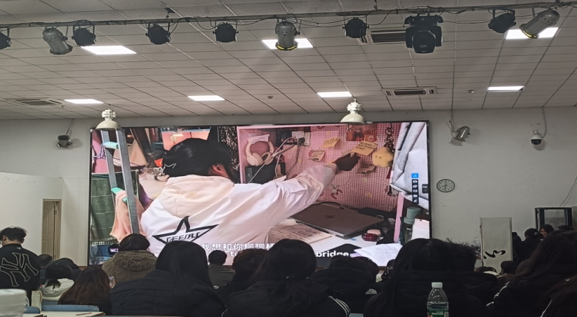 接下来就是短视频类观看评比,在短视频类评比中,各参赛团队纷纷展示了自己精心制作的短视频作品。他们的题材都很新颖,既有聚焦校园暴力,也有聚焦人性的反转,也有聚焦父爱等,每一部作品都凝聚了创作者的心血和智慧,充分展现了他们的创意才华和制作水平。他们每个组需要派一个人来阐释自己短视频的一个理念。随着最后一个作品的播放结束,全场响起了热烈的掌声和欢呼声。这一环节不仅为观众带来了视觉上的享受,也为参赛团队提供了一个展示才华和互相学习的平台。最后需要评委和大众评委进行投票。