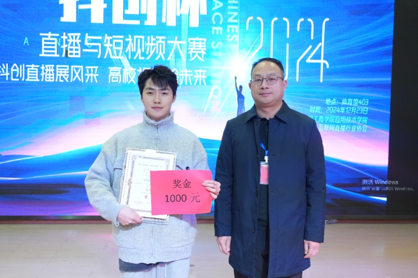 最后,最为激动人心的时刻到来了。由金学武院长亲自颁发一等奖,这一奖项代表了抖创杯直播决赛的最高荣誉。获奖者以其卓越的表现、精湛的技巧和深刻的创意,赢得了金学武院长的高度评价和认可。在全场观众的热烈掌声中,金学武院长将奖杯和证书授予了获奖者,并发表了热情洋溢的颁奖词,鼓励所有参赛者继续努力,为直播行业的发展贡献更多智慧和力量。