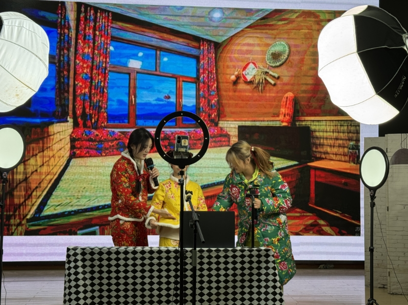 第二组的选手走的小品路线,卖的是东北大花袄,非常能活跃气氛。