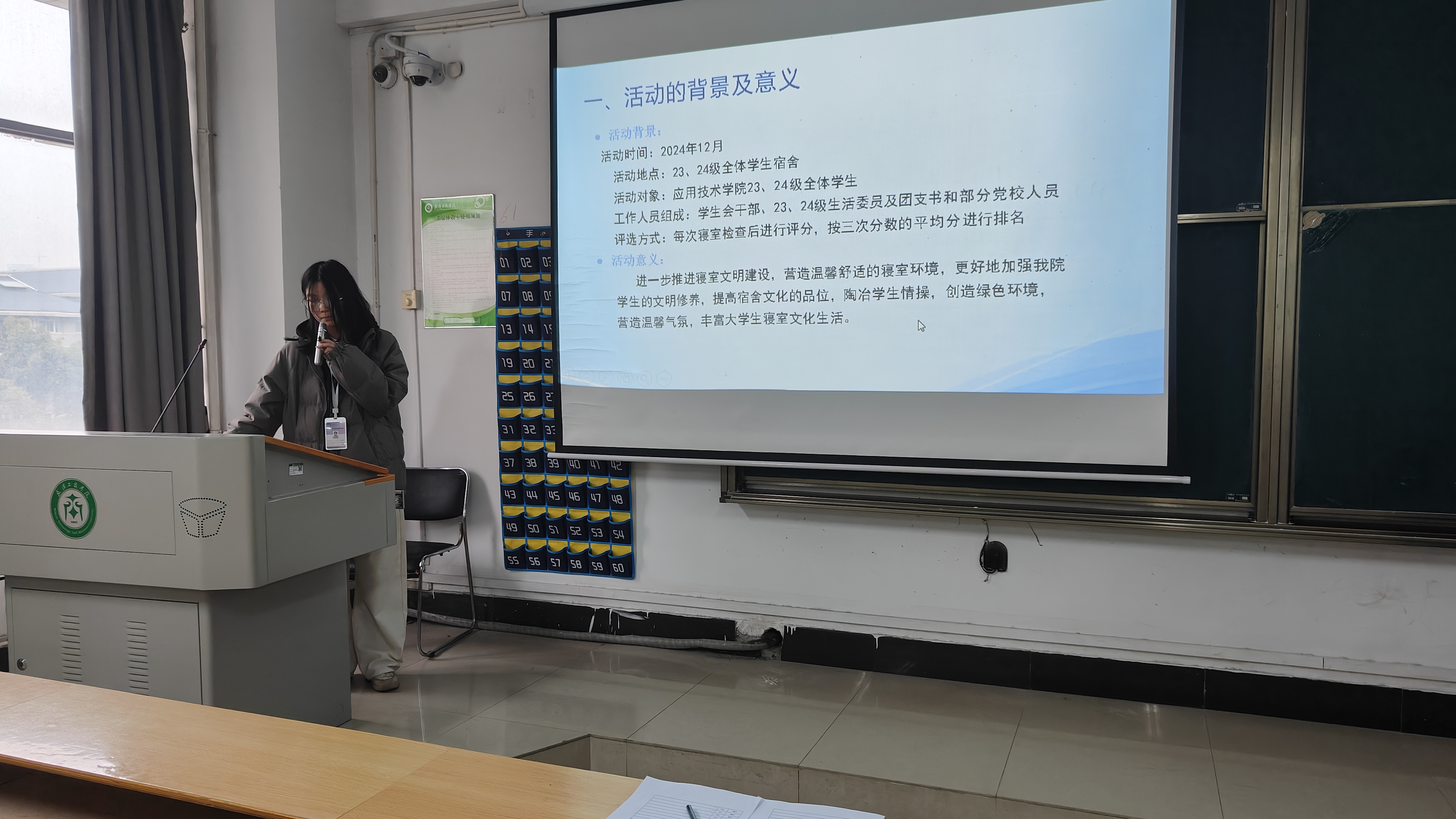 在温馨与活力交织的氛围中,应用技术学院文明寝室月活动顺利落下帷幕。此次活动不仅营造了整洁、文明的寝室环境,更增强了同学们的团队合作与集体荣誉感。