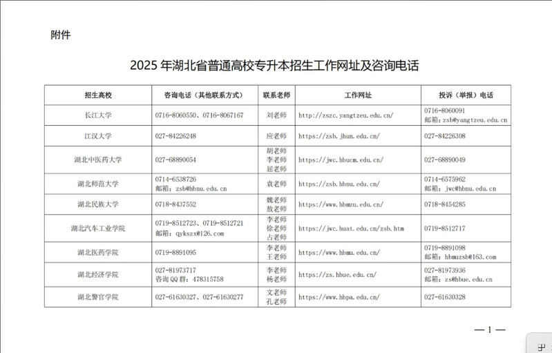 1.招生高校。举办专升本的高校为49所省属普通本科高校(见附件)。其中,长江大学等18所高校招收专项计划考生。