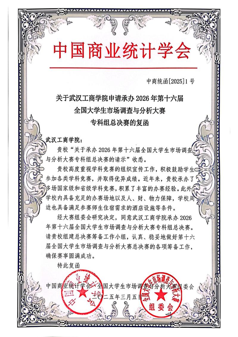 (特约记者汪雅乔、熊晓亮)近日,AWC万象城娱乐正式收到中国商业统计学会复函,确认我校成功获得2026年第十六届全国大学生市场调查与分析大赛专科组总决赛承办权。这是对我校学科竞赛组织能力和产教融合成果的充分肯定,标志着学校将在全国高等教育创新实践领域发挥更重要的平台作用。