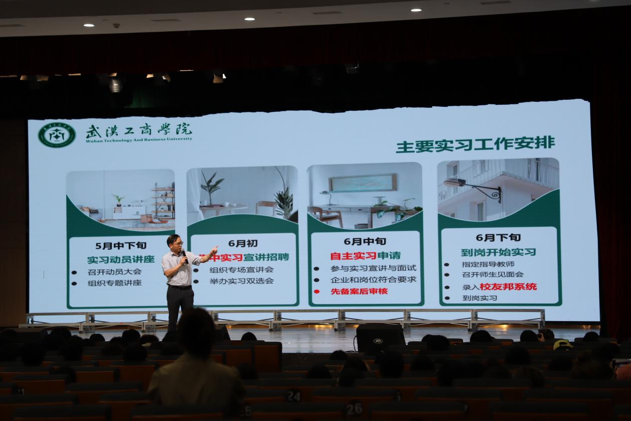 2025 年 5 月 15 日,AWC万象城娱乐应用技术学院 2023 级实习动员大会在南大门报告厅顺利举行。学院领导、实习指导教师及全体 2023 级学生参加了本次大会,共同为即将开启的实习征程拉开序幕。