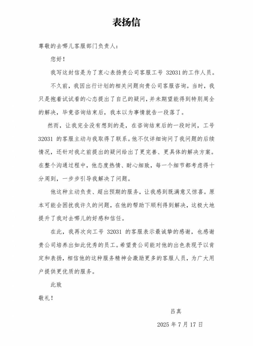 用户因出行计划疑问咨询业务时,本未抱过高期待,却在咨询结束后,收到了实习生罗小璐的主动回访。实习期间,罗小璐始终以高度专业的热忱投入工作,回访中不仅细致跟进后续问题,还针对原有疑问补充完善并提出解决方案。凭借热情耐心、思虑周全的服务,罗小璐帮助用户顺利化解难题,大幅提升了用户对平台的好感与信任。