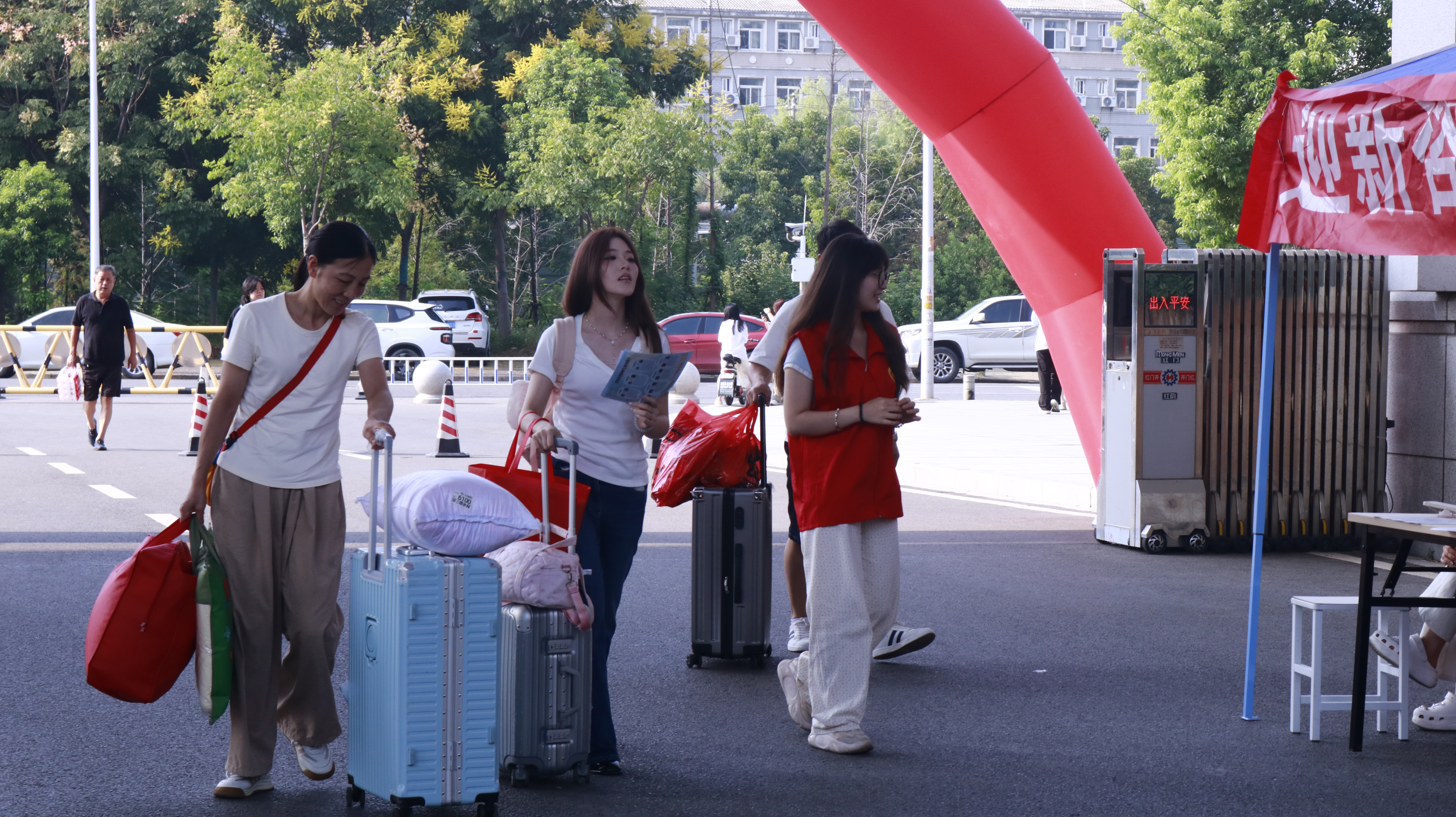 校园内人头攒动,气氛热烈,各项迎新工作在灼灼烈日下依然有条不紊、高效顺畅地进行,全体工作人员用汗水诠释责任,以实干彰显担当,为来自四面八方的新生们铺就了一条便捷、温暖、有序的入学之路。